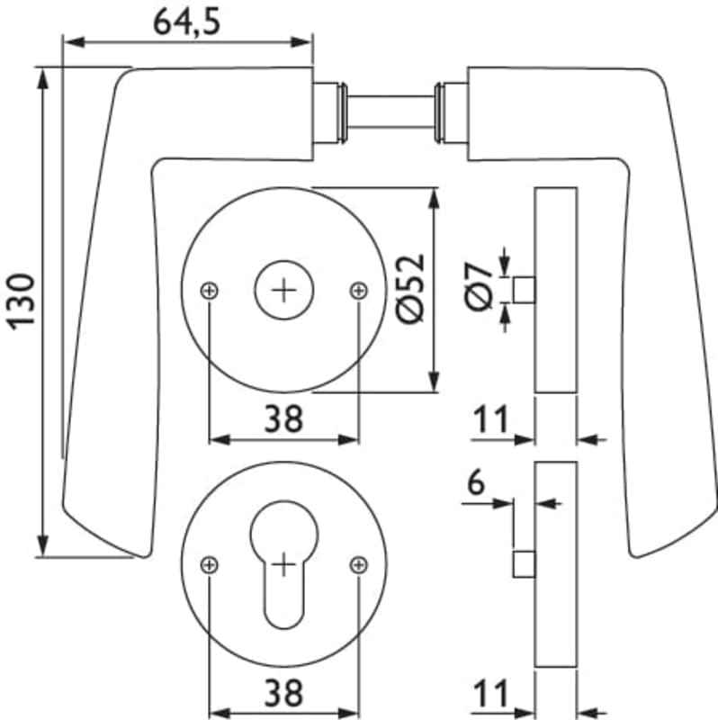 ZT-Drückergarnitur 1290 TWIST, mit Smart-Clip Rosetten 2336 SC & RHF, Ausf.: PZ, fest/drehbar, mit Rückholfeder, Tst. 37 - 47 mm, Oberfl. 60 (Edelstahl matt)
