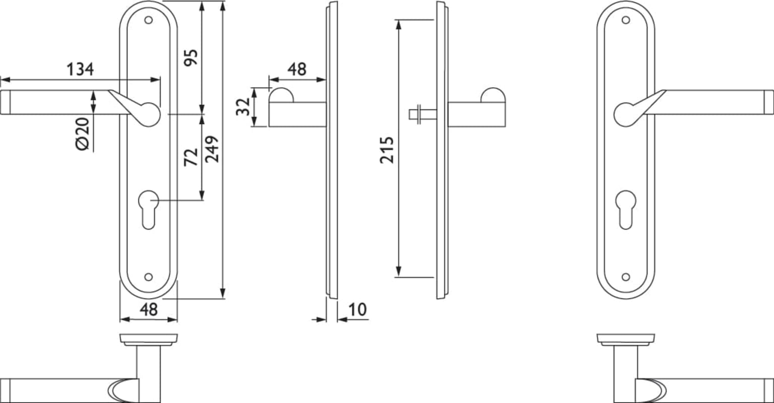 ZT-Drückergarnitur 1126 VISION II, mit Langschild 2075 R, Ausf.: PZ 72 mm, Oberfl. 65 (Glanzchrom/Edelstahl matt)
