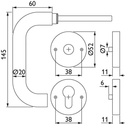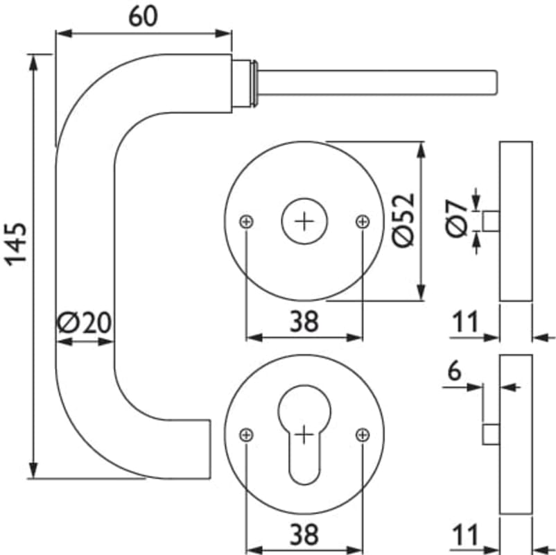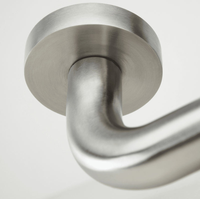 ZT-Drücker-Halbgarnitur 1801 BASIC 01, mit Smart-Clip Rosetten 2336 SC & RHF / PZ, DIN links, M5 Nocken für Ros.-Schutzkombination, fest/drehbar, mit Rückholfeder, Oberfl. 60 (Edelstahl matt)