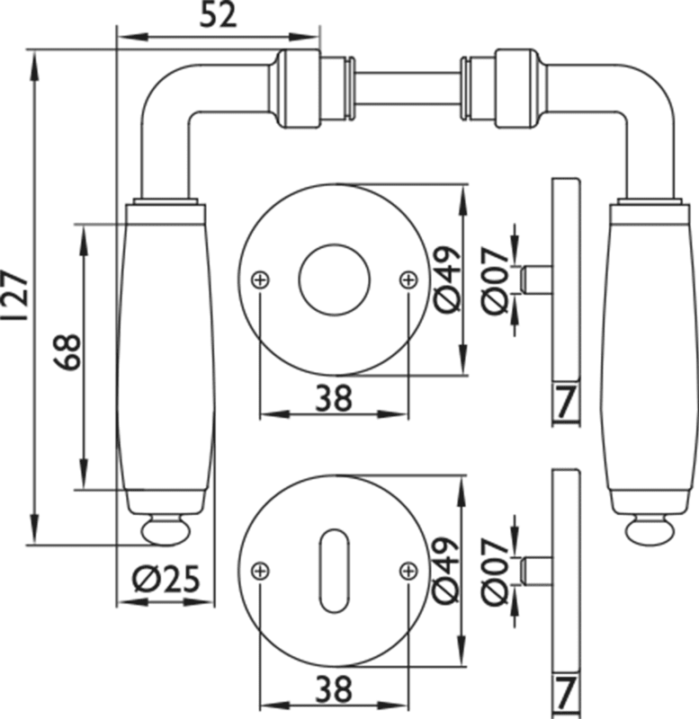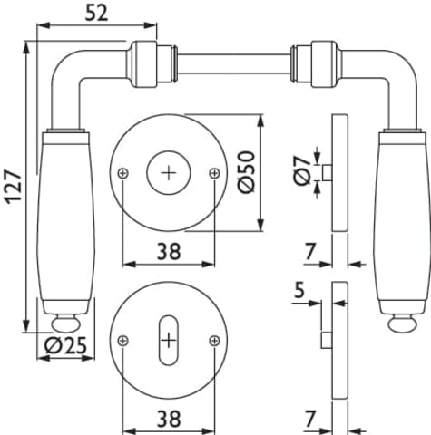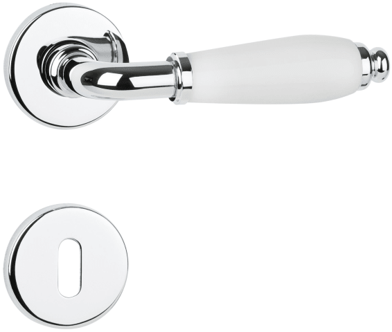 ZT - Drückergarnitur 1157 LILLE mit Rosetten 2074, mit Rückholfeder Oberfl. 04 PW (Glanzchrom/Porzellan weiß)