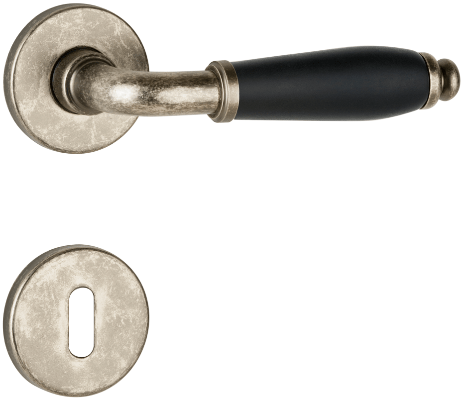 Drückergarnitur 1157 LILLE mit Rosetten 2074, mit Rückholfeder Oberfl. 06AS (Eisenfarben Antik schwarz/schwarz)