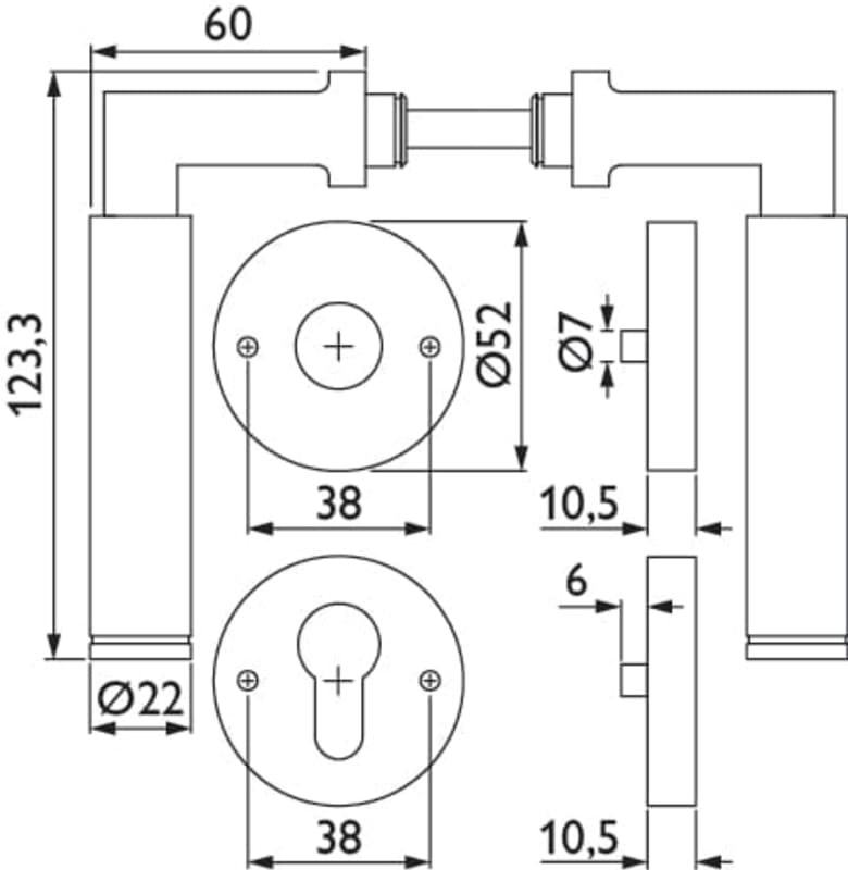 Drückergarnitur mit Rosetten, mit Rückholfeder