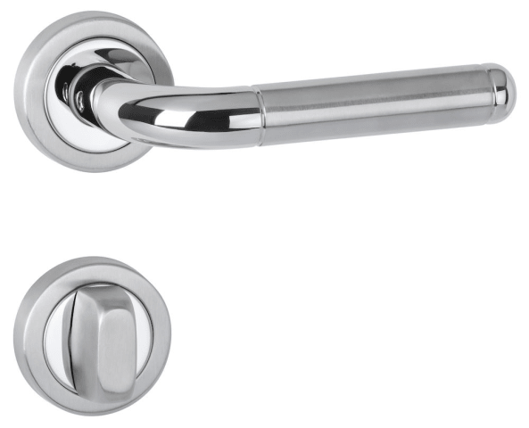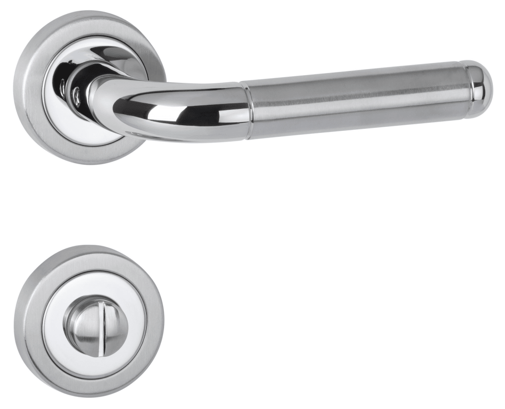 Bad-Drückergarnitur 1110 ER CLUB, mit Rosetten 2031, Ausf.: BAD mit Riegel 3212/3216 - 6 mm Vierkant, mit Hülse 7/8 mm, Türstärke 38 - 42 mm, Oberfl. 63 (Edelstahl poliert/Edelstahl matt)