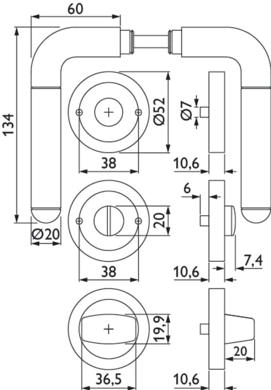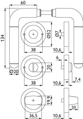 Hermat Drückergarnitur 1110/2031,Ros.,rd.,WC/SS,8(8),ER.pol./ma.,TS 38-42
