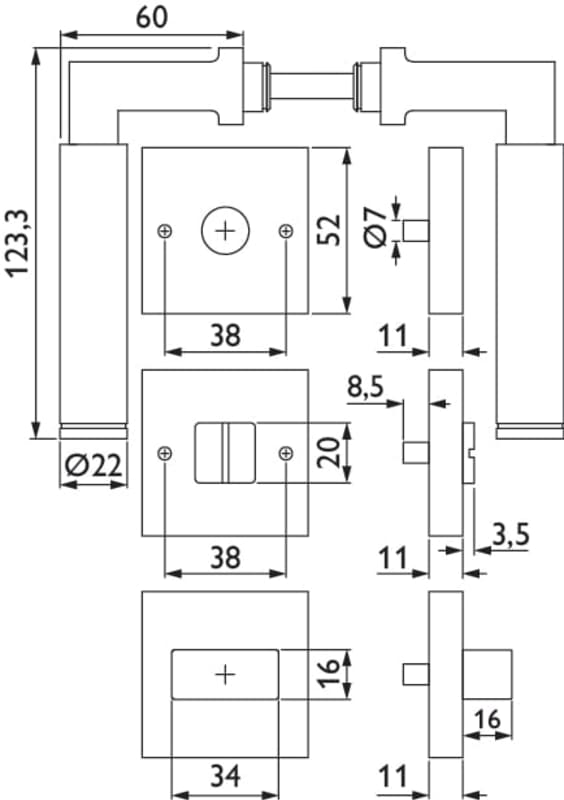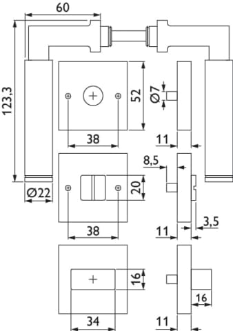 • Drücker fest/drehbar gelagert mit Hochhaltefeder