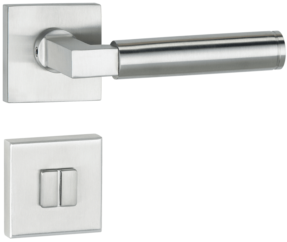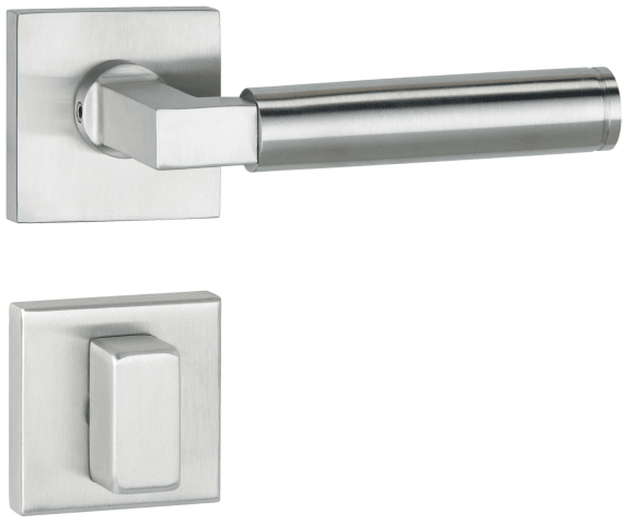 Drückergarnitur mit Smart-Clip Rosetten, fest/drehbar mit Rückholfeder.