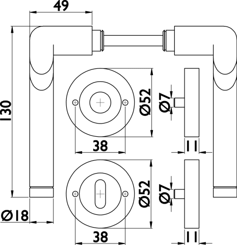 Hermat Drückerlochteil VISION 1125, 8mm, DL,edelstahl poliert/edelstahl matt