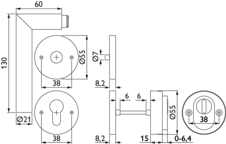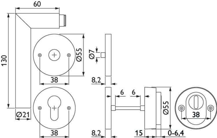 ZT-Drückerlochteil 1802 / 21 mm Ø BASIC 02, festdrehbar auf Rosette 2073 MI, beidseitig verwendbar / inkl. Stift 8/10 x 80 mm, mit Rückholfeder und 1 Paar Schutzrosette 2038 KS, Oberfl. 60 (Edelstahl