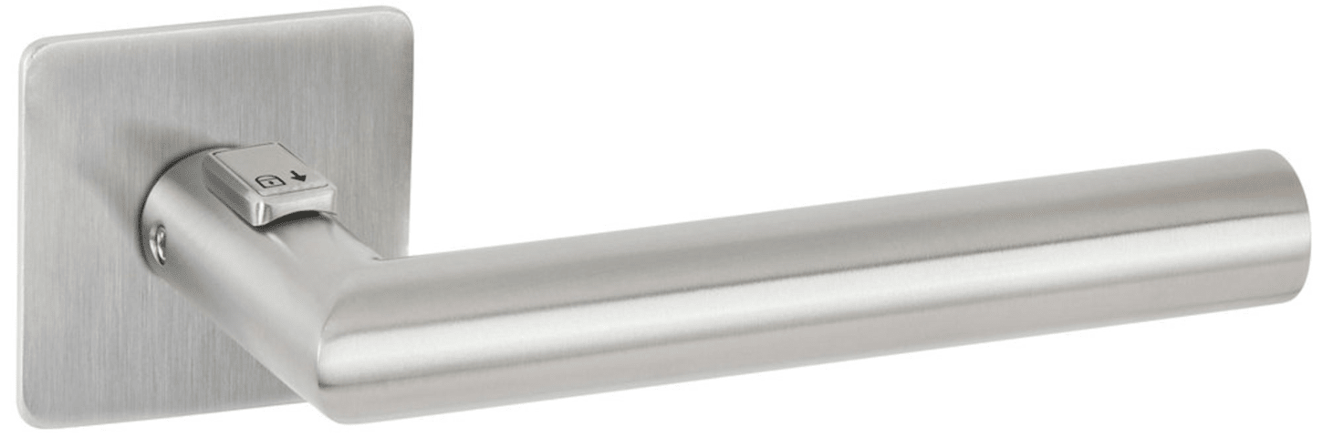HERMAT Drückergarnitur BASIC 02 Ö1802/2611/4042; Produkttyp: Drückergarnitur; Produkttyp (Hersteller): Drückerpaar; Ausführung: ohne Schlüsselrosette; Befestigungsart Drückerrosette (außen): verdeckt verschraubt; Befestigungsart Drückerrosette (innen): verdeckt verschraubt; Befestigungstechnik: mit Stütznocken; Form Drückerrosette: eckig; Vierkant: 8,5 mm; Material: Edelstahl; Form Türgriff (innen): Gehrung; Ausführung Türgriff (innen): mit Verriegelung; Form Türgriff (außen): Gehrung; Ausführung Türgriff (außen): mit Verriegelung; Durchmesser Türgriff (innen): 20 mm; Durchmesser Türgriff (außen): 20 mm; Länge Türgriff (innen): 136 mm; Länge Türgriff (außen): 136 mm; Höhe Türgriff (innen): 60 mm; Höhe Türgriff (außen): 60 mm; Breite Drückerrosette (außen): 54 mm; Breite Drückerrosette (innen): 54 mm; Länge Drückerrosette (außen): 54 mm; Länge Drückerrosette (innen): 54 mm; Höhe Drückerrosette (außen): 2,8 mm; Höhe Drückerrosette (innen): 2,8 mm; Einsatzbereich: Zimmertür; Türart: Vollblatt; Türwerkstoff: Holz,Stahl; Anwendung: außen/innen; DIN-Richtung: DIN Links; Farbe: grau; Farbton: edelstahl; Oberfläche: matt; Technik: mit Smart-Clip-Magnetic-Funktion; Ausführung Vierkant: Vierkantstift; Türstärke min.: 38 mm; Türstärke max.: 46 mm; Norm: Ö-Norm