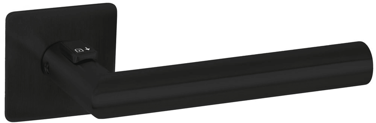 HERMAT Drückergarnitur BASIC 02 Ö1802/2611/4042; Produkttyp: Drückergarnitur; Produkttyp (Hersteller): Drückerpaar; Ausführung: ohne Schlüsselrosette; Befestigungsart Drückerrosette (außen): verdeckt verschraubt; Befestigungsart Drückerrosette (innen): verdeckt verschraubt; Befestigungstechnik: mit Stütznocken; Form Drückerrosette: eckig; Vierkant: 8,5 mm; Material: Edelstahl; Form Türgriff (innen): Gehrung; Ausführung Türgriff (innen): mit Verriegelung; Form Türgriff (außen): Gehrung; Ausführung Türgriff (außen): mit Verriegelung; Durchmesser Türgriff (innen): 20 mm; Durchmesser Türgriff (außen): 20 mm; Länge Türgriff (innen): 136 mm; Länge Türgriff (außen): 136 mm; Höhe Türgriff (innen): 60 mm; Höhe Türgriff (außen): 60 mm; Breite Drückerrosette (außen): 54 mm; Breite Drückerrosette (innen): 54 mm; Länge Drückerrosette (außen): 54 mm; Länge Drückerrosette (innen): 54 mm; Höhe Drückerrosette (außen): 2,8 mm; Höhe Drückerrosette (innen): 2,8 mm; Einsatzbereich: Zimmertür; Türart: Vollblatt; Türwerkstoff: Holz,Stahl; Anwendung: außen/innen; DIN-Richtung: DIN Rechts; Farbe: schwarz; Farbton: classic black; Farbe (RAL): ähnlich RAL 9005; Oberfläche: matt; Technik: mit Smart-Clip-Magnetic-Funktion; Ausführung Vierkant: Vierkantstift; Türstärke min.: 38 mm; Türstärke max.: 46 mm; Norm: Ö-Norm