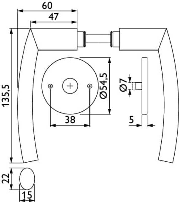 ZT-Drückerpaar 1807 BASIC 07 - Klasse 3 | mit Rosetten 2573 K | ohne Schlüsselrosetten | mit Rückholfeder, Türstärke 37 - 44 mm | Oberfl. 60 (Edelstahl matt)