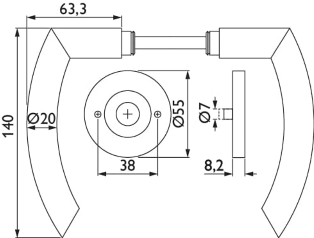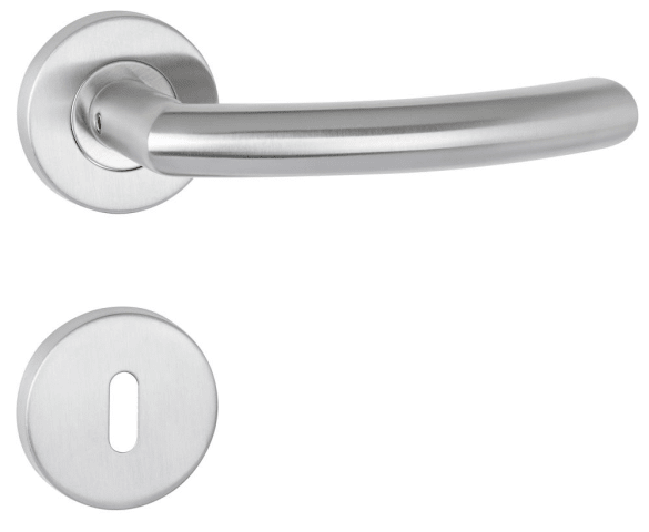 ZT-Drückerpaar 1804 BASIC 04 - Klasse 4, mit Rosetten 2073 M, ohne Schlüsselrosetten, fest/drehb. m. Rückholf., Metall-UK, Tst. 37-48 mm, Oberfl. 60 (Edelstahl matt)