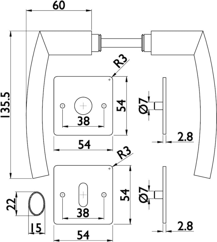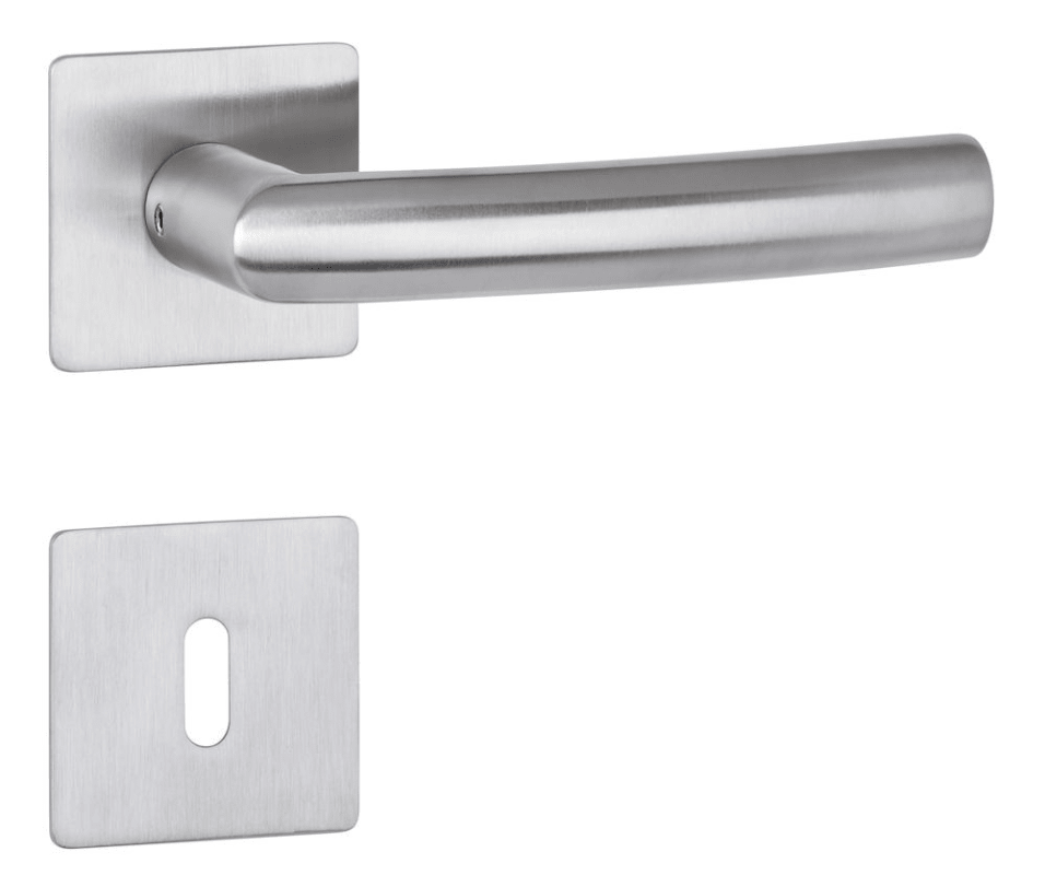 ZT-Drückerpaar 1807 BASIC 07, mit MAGCLIP Rosetten 2611 FL & RHF, ohne Schlüsselrosetten, fest/drehbar, mit Rückholfeder, Tst. 38 - 45 mm, Oberfl. 60 (Edelstahl matt)