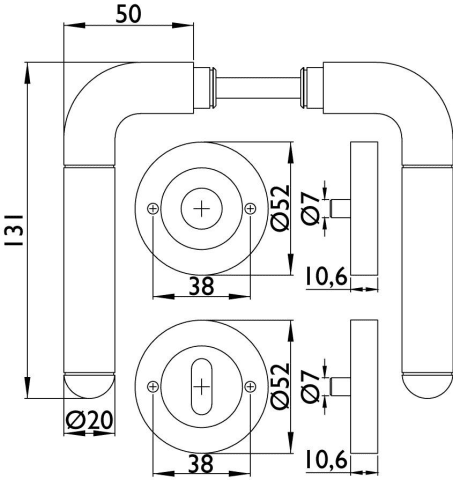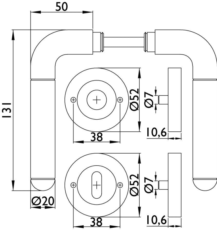 ZT-Drückerpaar 1110 CLUB, 8 mm Vierkant, Oberfl. 65 (Glanzchrom/Edelstahl matt)