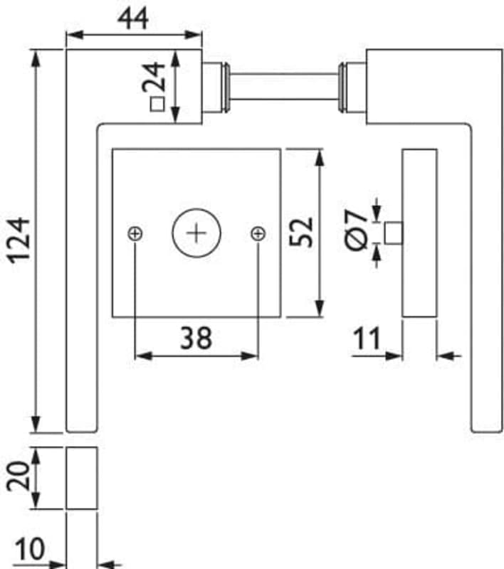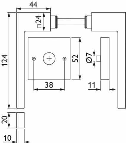 ZT-Drückerpaar 1682 L WEST, mit Rosetten 2011 KD & RHF, ohne Schlüsselrosetten, mit Rückholfeder, Türstärke 38 - 42 mm, Oberfl. 74 (Classic Black, ähnl. RAL 9005)