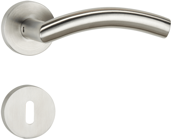 ZT-Drückerpaar 1231 MOON, mit Smart-Clip Rosetten 2336 SC & RHF, ohne Schlüsselrosetten, fest/drehbar, mit Rückholfeder, Tst. 37 - 47 mm, Oberfl. 60 (Edelstahl matt)