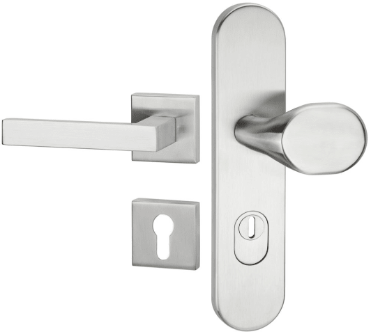 ZT-EN2-Kombi-Schutz-Wechselgarnitur 1682 L WEST, außen Langschild 2089 KS, Knopf 3128 gekröpft, innen Rosette 2311 SC, PZW 72 links, Tst. 36-53 mm, mit Kernziehschutz für Zylinderüberstand 8 - 15 mm, Oberfl. 60 (Edelstahl matt)