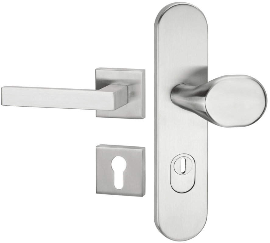 ZT-EN2-Kombi-Schutz-Wechselgarnitur 1682 L WEST, außen Langschild 2089 KS, Knopf 3128 gekröpft, innen Rosette 2311 SC, PZW 72 links, Tst. 36-53 mm, mit Kernziehschutz für Zylinderüberstand 8 - 15 mm,