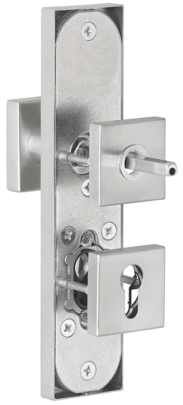 Ausführung KS = 72 mm Entfernung / 8 mm Vierkant / Befestigungsschrauben für Tst. 36 - 53 mm. Ausführung KSH = 92 mm Entfernung / 8 mm Vierkant mit Hülse 8 auf 10 mm /Befestigungsschrauben für Tst. 64 - 83 mm. Knopf links/rechts verwendbar. Zylinderziehschutz für Zylinderüberstand 8 - 15 mm. Zur Kombination mit allen Lochteilen aus dem Hermat Sortiment.