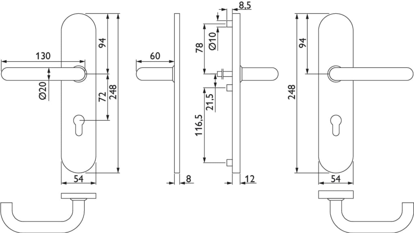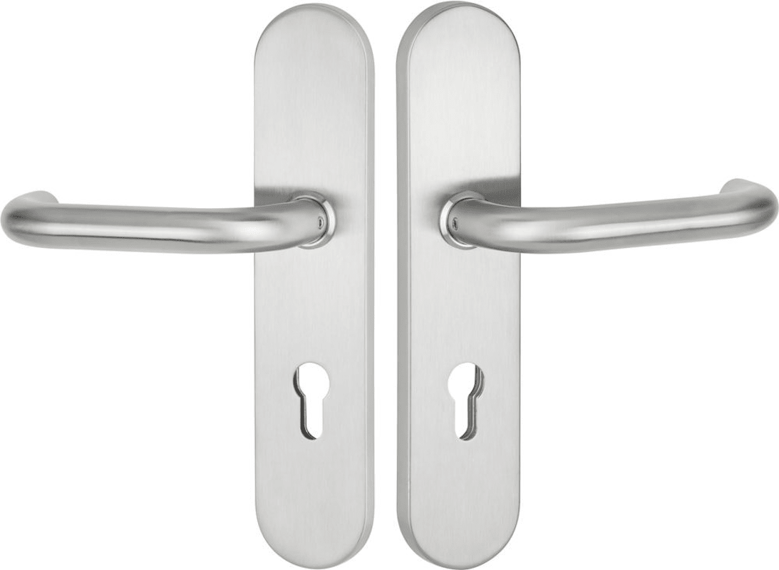ZT-EN2-Schutz-Drückergarnitur 1801 BASIC 01, mit Langschild 2089 S, Ausf.: PZ 72 mm, Türstärke 36 - 53 mm, mit Anbohrschutz, Außenschildstärke 12 mm, Oberfl. 60 (Edelstahl matt)