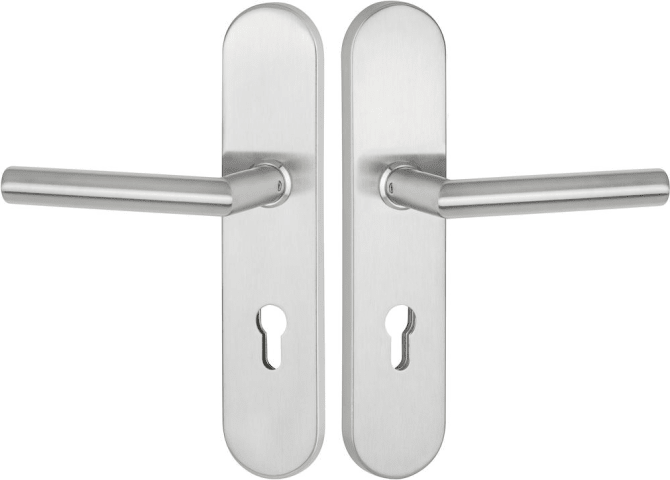 ZT-EN2-Schutz-Drückergarnitur 1802 BASIC 02, mit Langschild 2089 S, Ausf.: PZ 72 mm, Türstärke 36 - 53 mm, mit Anbohrschutz, Außenschildstärke 12 mm, Oberfl. 60 (Edelstahl matt)