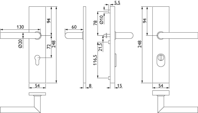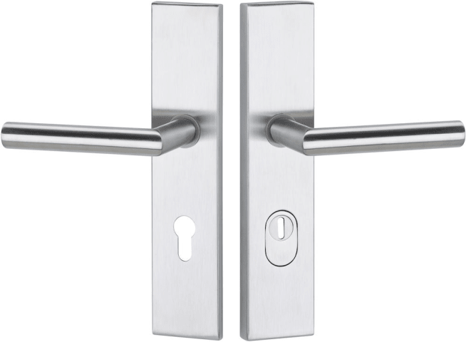 ZT-EN2-Schutz-Drückergarnitur 1802 BASIC 02, mit Langschild 2094 KS, Ausf.: PZ 72 mm, Türstärke 36 - 53 mm, mit Kernziehschutz für Zylinderüberstand 8 - 15 mm, Oberfl. 60 (Edelstahl matt)