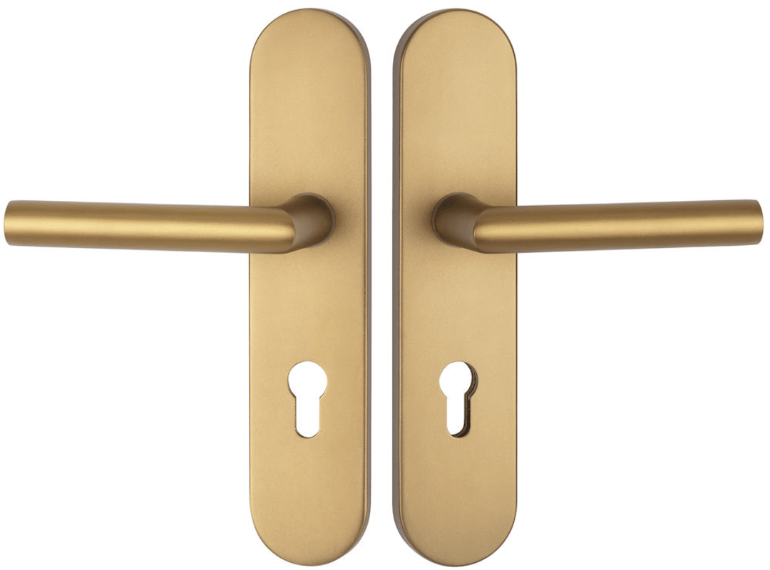 ZT-EN2-Schutz-Drückergarnitur 1902 BASIC 02, mit Langschild 2091 S, Ausf.: PZ 72 mm, Türstärke 35 - 55 mm, mit Anbohrschutz, Außenschildstärke 12 mm, Oberfl. F4 (Bronzefarben eloxiert)