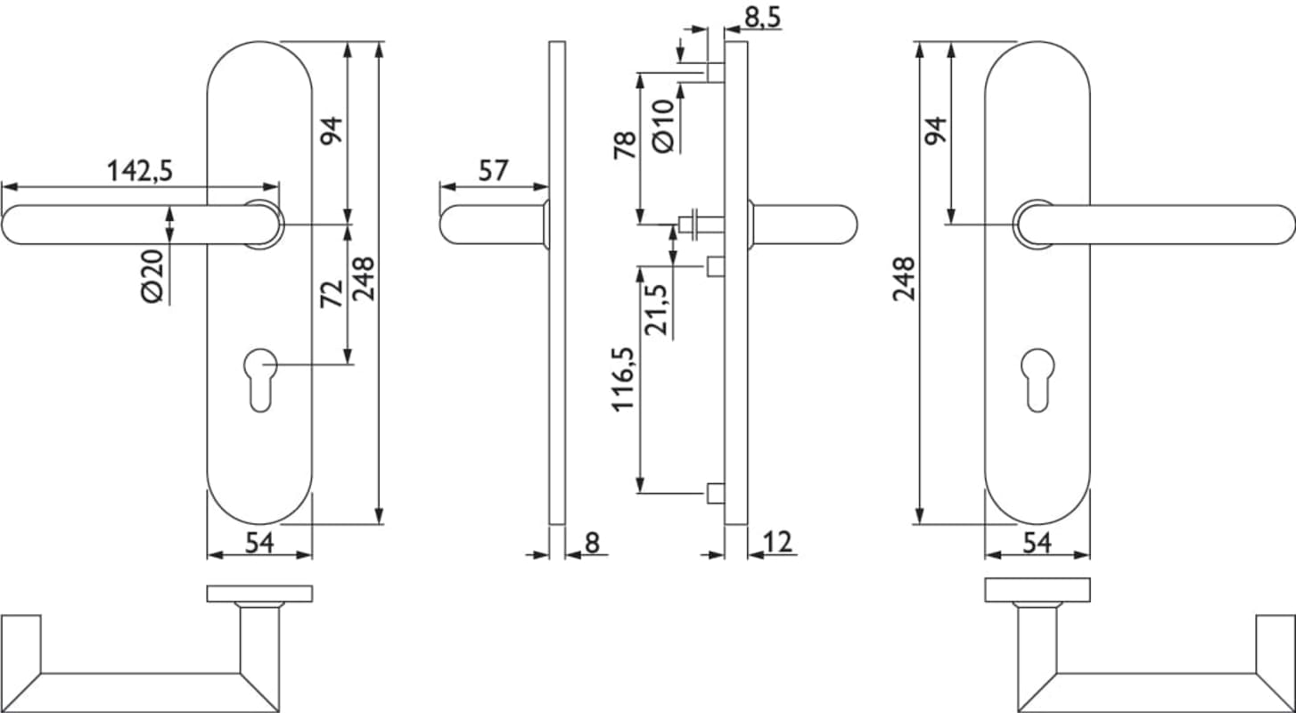 ZT-EN2-Schutz-Drückergarnitur 1808 BASIC 08, mit Langschild 2089 S, Ausf.: PZ 72 mm, Türstärke 36 - 53 mm, mit Anbohrschutz, Außenschildstärke 12 mm, Oberfl. 60 (Edelstahl matt)