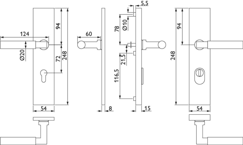 ZT-EN2-Schutz-Drückergrt. 1832 INFINITY CLASSIC, mit Langschild 2094 KS, Ausf.: PZ 72 mm, Türstärke 36 - 53 mm, mit Kernziehschutz für Zylinderüberstand 8 - 15 mm, Oberfl. 61 (Edelstahl poliert)