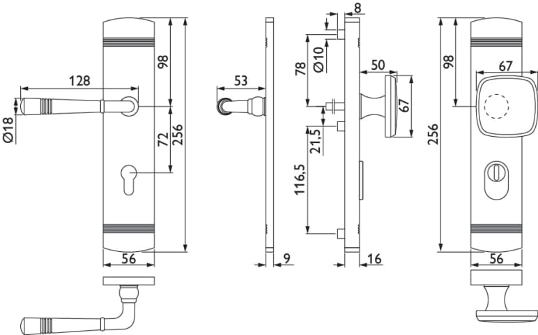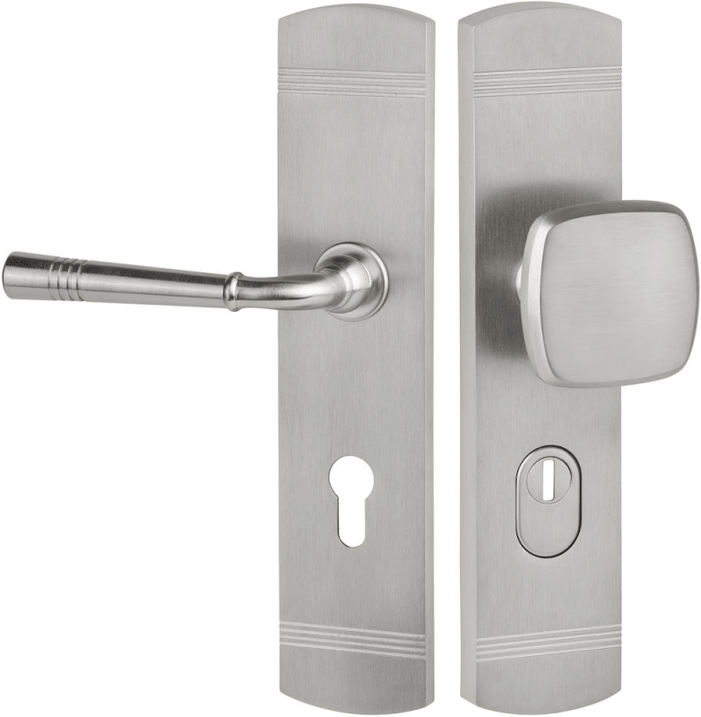 ZT-EN2-Schutz-Wechselgarnitur 1174 LYON, mit Langschild 2093 KS, Knopf 3134, Ausf.: PZW 72 mm, Türstärke 37 - 50 mm, mit Kernziehschutz für Zylinderüberstand 9 - 14 mm, Oberfl. 20 (PVD Edelstahlfarben