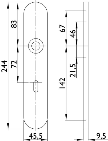 ZT-Langschild 2002 U, Drückerlochstanzung 16 mm Ø, Ausf.: BB 72 mm, mit Drückerführungsscheibe 19 x 16 x 1 mm, Oberfl. 60 (Edelstahl matt)