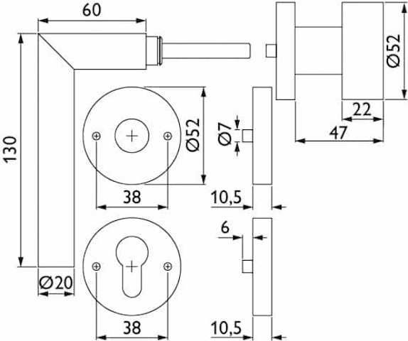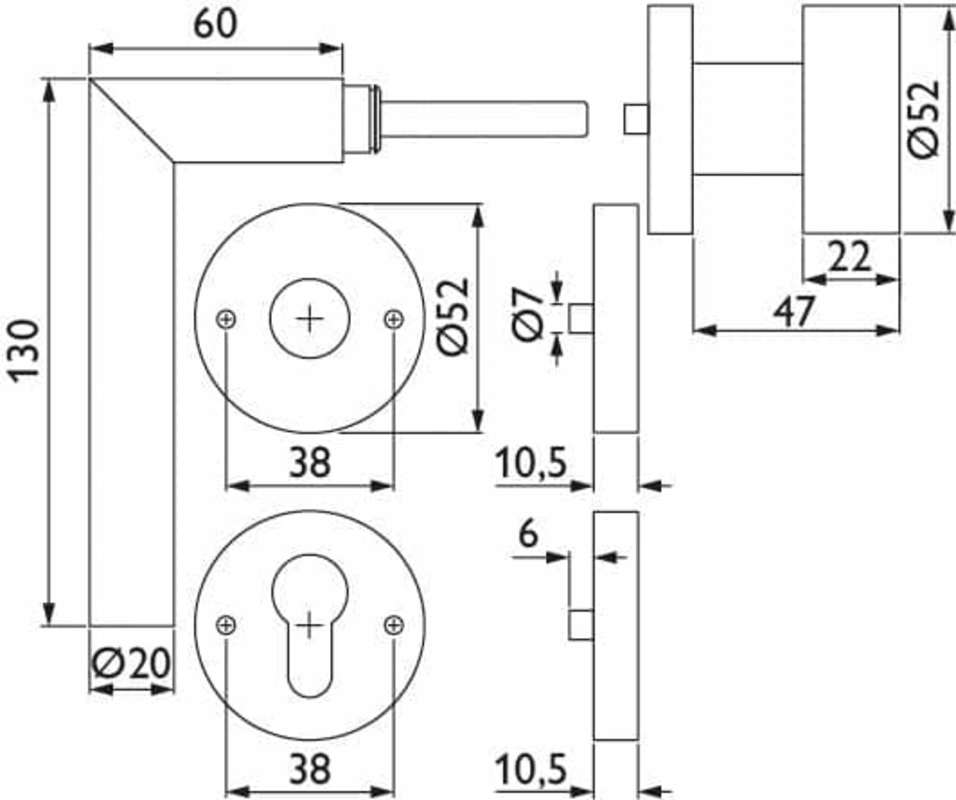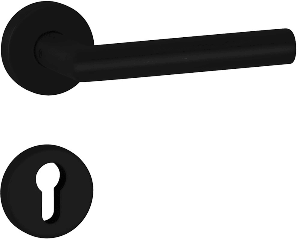 ZT-Wechselgarnitur 1802 BASIC 02, mit Rosetten 2036 KB / Knopf 3127, Ausf.: PZW, links/rechts verwendbar, mit Rückholfeder, Türstärke 38 - 42 mm, Oberfl. 74 (Classic Black, ähnl. RAL 9005)