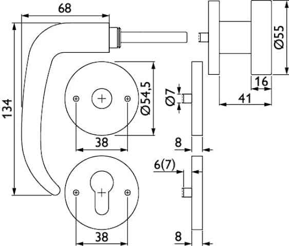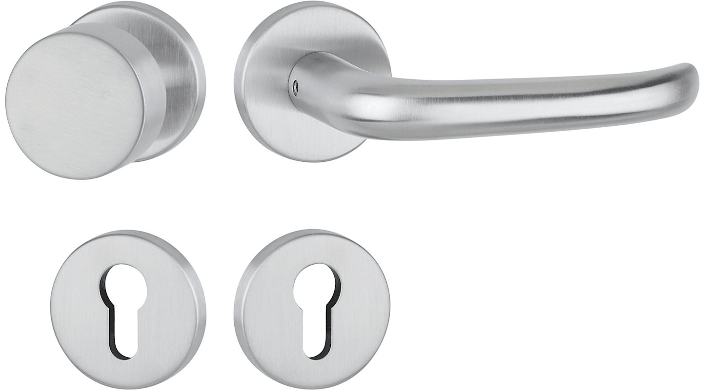 ZT-Wechselgarnitur 1806 BASIC 06 - Klasse 3 | mit Rosetten 2273 K / Knopf 3117 | Ausf.: PZW, Unterkonstruktion 1x ls + 1x rs | mit Rückholfeder, Türstärke 38 - 42 mm | Oberfl. 60 (Edelstahl matt)