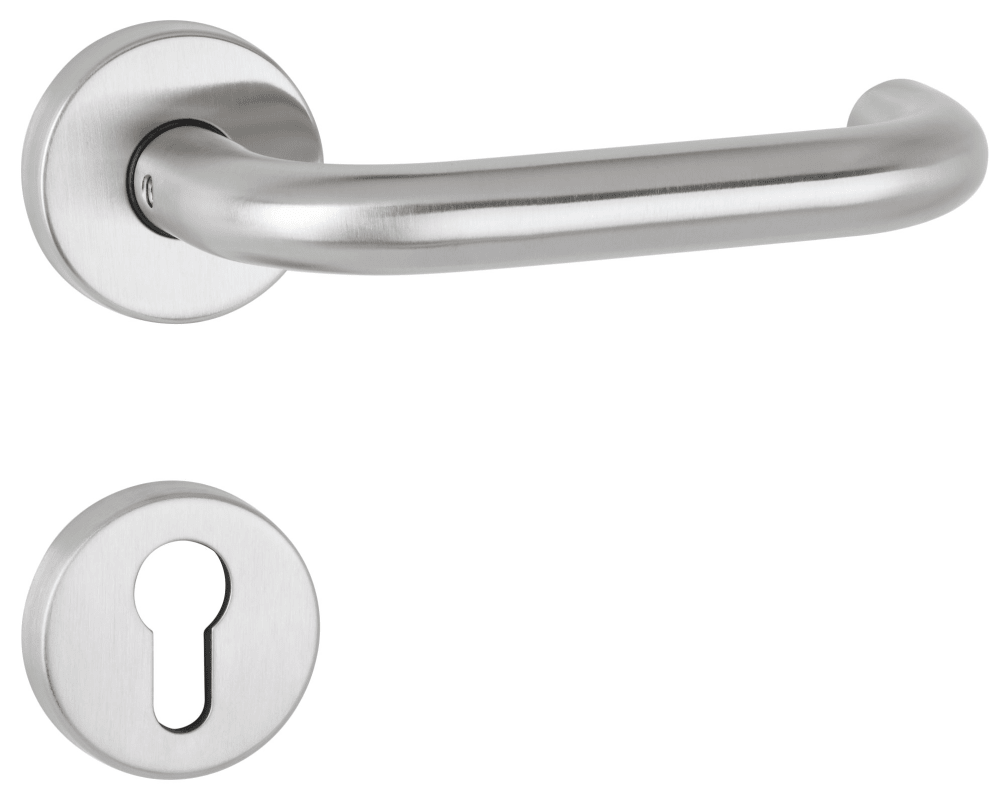 ZT-Wechselgarnitur 1891 BASIC 01 / 19 mm, mit Rosetten 2036 ST / Knopf 3127, Ausf.: PZW, links/rechts verwendbar, mit Rückholfeder, Türstärke 38 - 42 mm, Oberfl. 60 (Edelstahl matt)