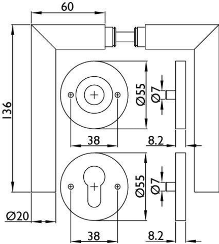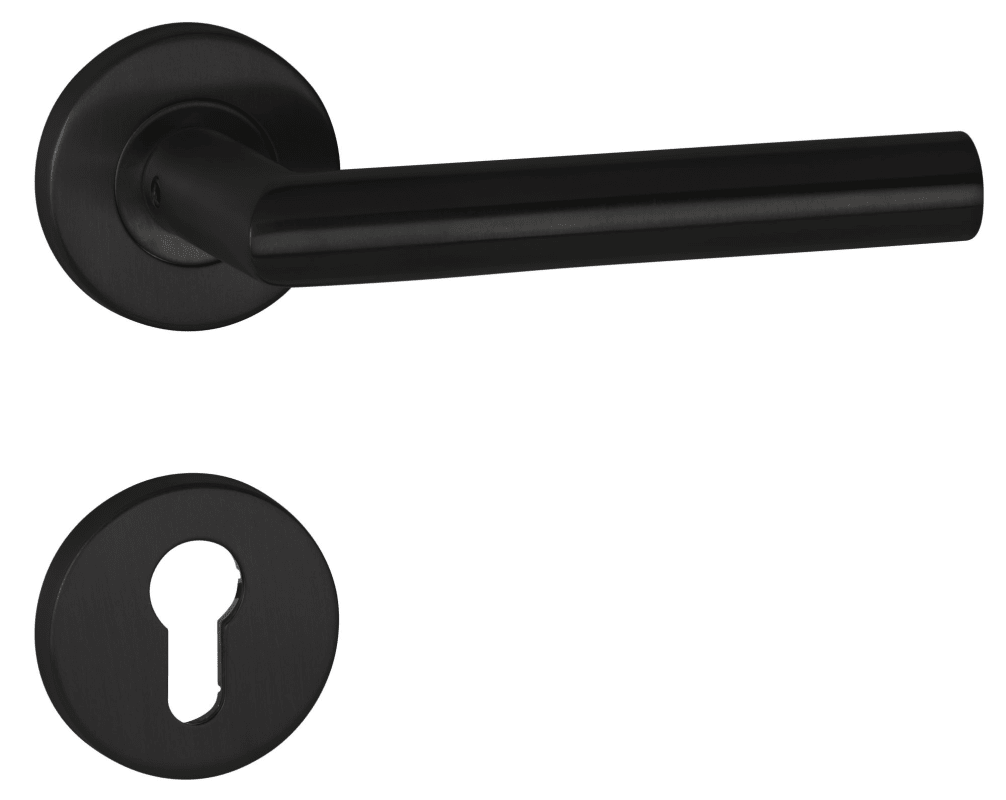 ZT-Wechselgarnitur 1802 BASIC 02 - Klasse 4, mit Rosetten 2073 M / fester Knopf 3127, Ausf.: PZW, DIN rechts, fest/drehb. m. Rückholf., Metall-UK, Tst. 37-48 mm, Oberfl. 74 (Classic Black PVD, ähnl. R