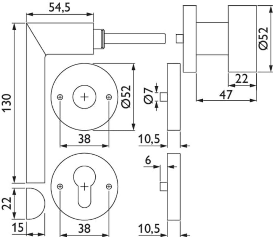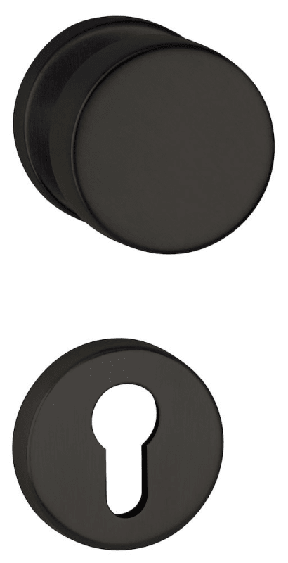 ZT-Wechselgarnitur 1813 BASIC 13, mit Rosetten 2036 KB / Knopf 3127, Ausf.: PZW, links/rechts verwendbar, mit Rückholfeder, Türstärke 38 - 42 mm, Oberfl. 72 (Smoke Black)