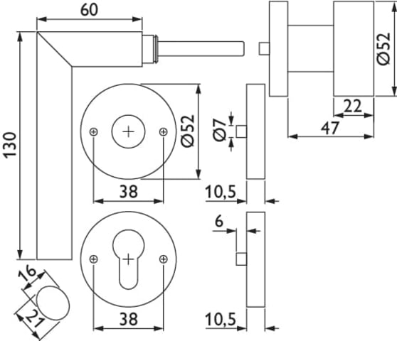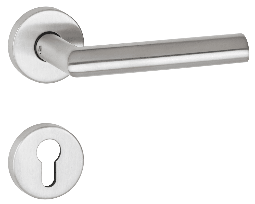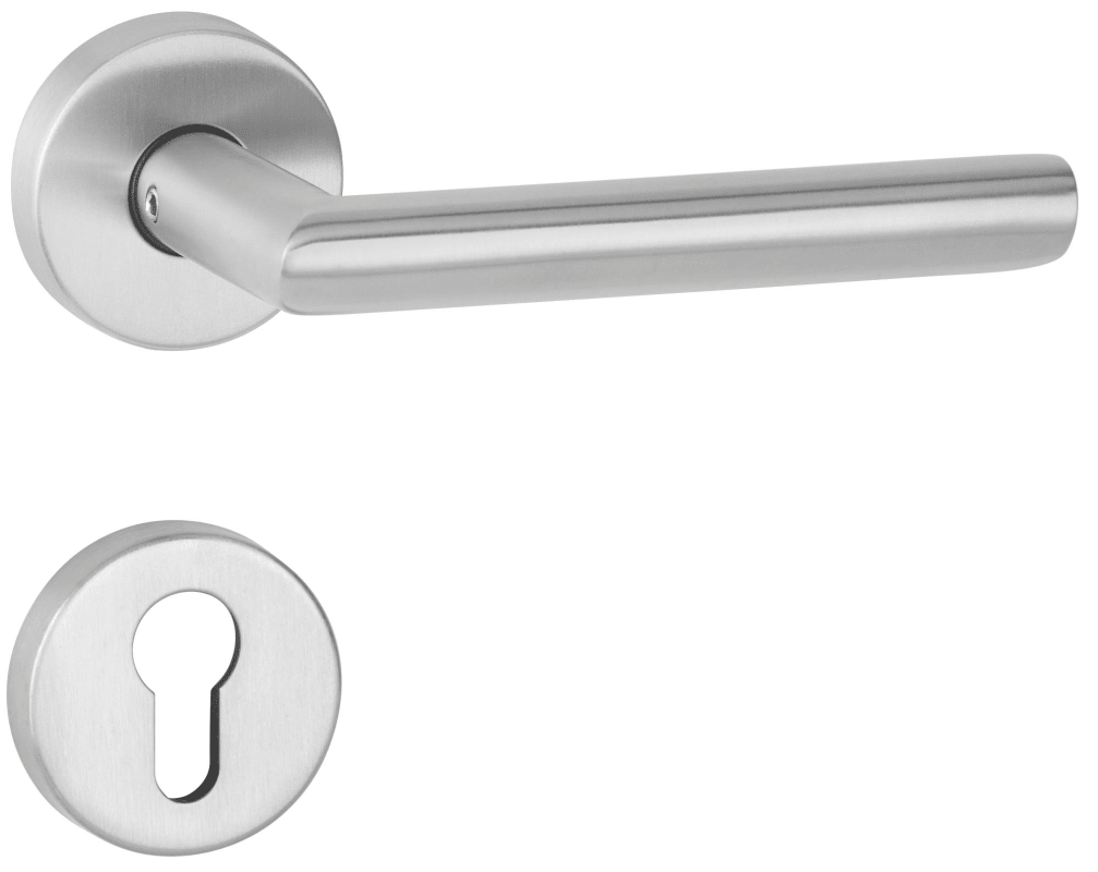 ZT-Wechselgarnitur 1355 ER VIP, mit Rosetten 2036 KB / Knopf 3127, Ausf.: PZW, DIN rechts, mit Rückholfeder, Türstärke 38 - 42 mm, Oberfl. 60 (Edelstahl matt)