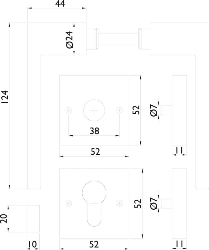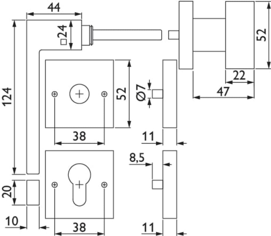 ZT-Wechselgarnitur 1682 L WEST, mit Smart-Clip Rosetten 2311 SC / Knopf 3127 K, Ausf.: PZW, DIN rechts, fest/drehbar, mit Rückholfeder, Tst. 37 - 47 mm, Oberfl. 60 (Edelstahl matt)