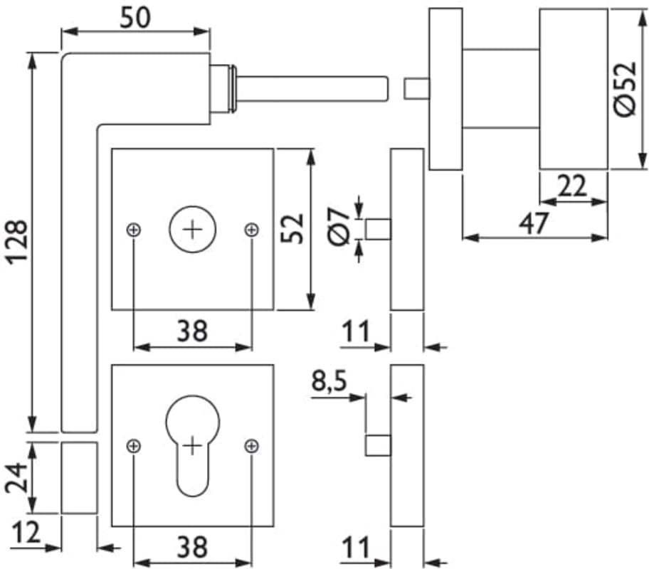 ZT-Wechselgarnitur 1682 MAG TEMPTATION, mit Smart-Clip Rosetten 2311 SC / Knopf 3127 K, Ausf.: PZW, DIN rechts, fest/drehbar, mit Rückholfeder, Tst. 37 - 47 mm, Oberfl. 63 (PVD Edelstahlfarben/Edelsta