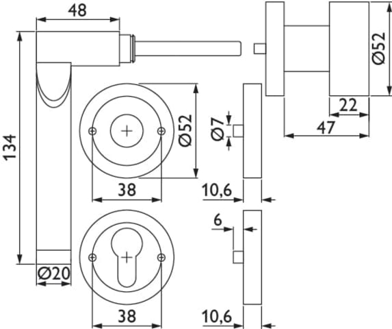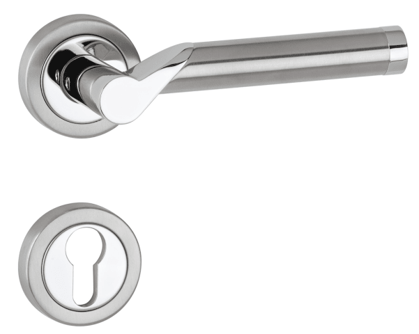ZT-Wechselgarnitur 1126 VISION II, mit Rosetten 2031 / Knopf 3127, Ausf.: PZW, DIN rechts, mit Rückholfeder, Türstärke 38 - 42 mm, Oberfl. 65 (Glanzchrom/Edelstahl matt)