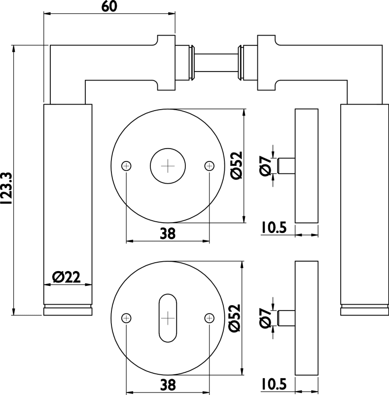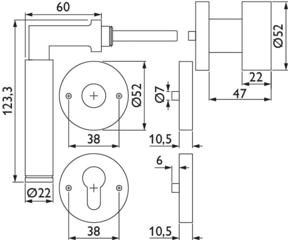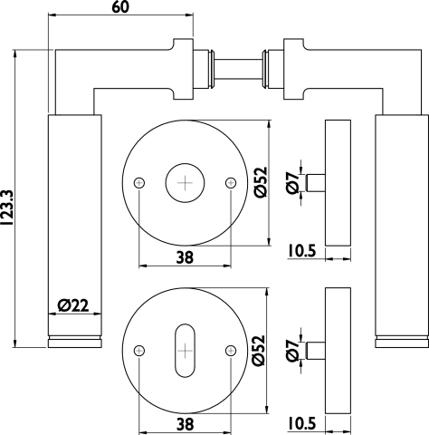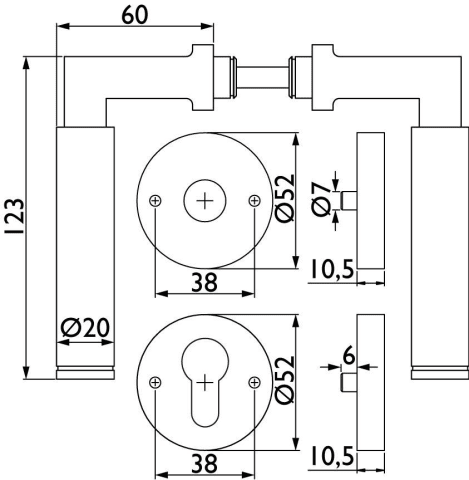 ZT - Wechselgarnitur 1831 INFINITY, mit Rosetten 2036 K - für Tst. 38 - 42 mm, Ausf.: PZW mit Knopf 3127, beidseitig verwendbar mit Rückholfeder, Oberfl. 60 (Edelstahl matt)