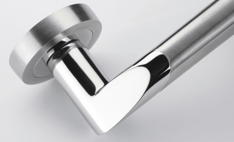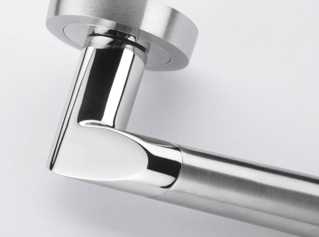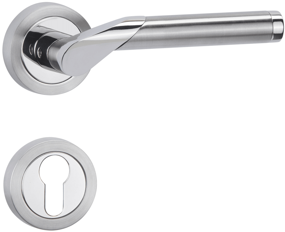 ZT-Wechselgarnitur 1125 VISION, mit Smart-Clip Rosetten 2331 SC / Knopf 3127, Ausf.: PZW, DIN links, fest/drehbar, mit Rückholfeder, Tst. 37 - 47 mm, Oberfl. 63 (Edelstahl poliert/Edelstahl matt)