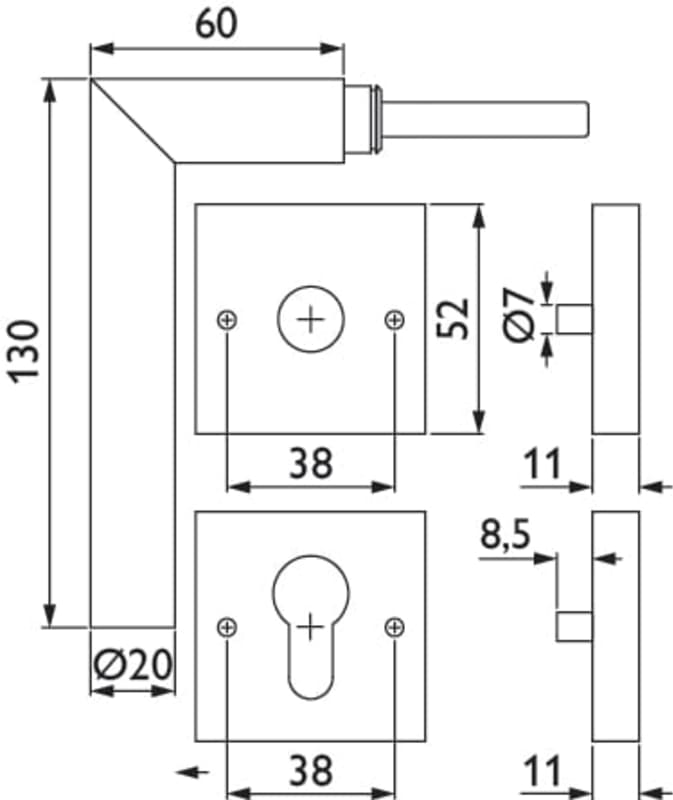 Halbgarnitur BASIC 02. Technische Daten: • Drücker fest/drehbar gelagert mit Hochhaltefeder • freier Zugang zu den Befestigungsschrauben/getrennte Montage • verdeckte Schraubbefestigung mit Gewindesc