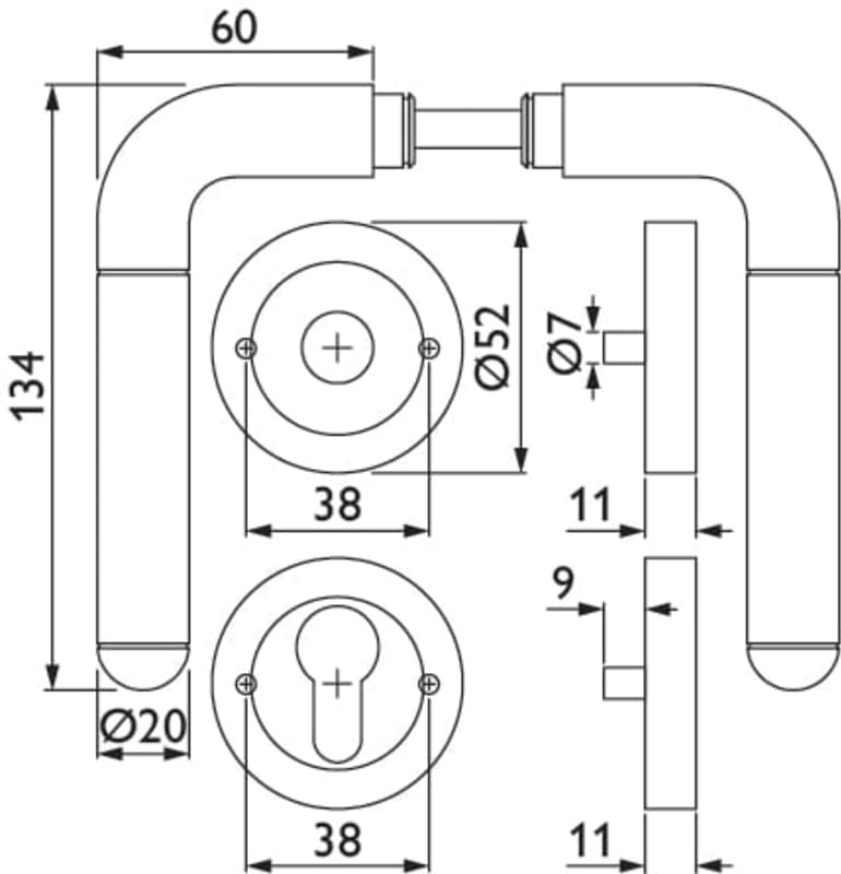 Innentürgarnitur CLUB, mit SmartClip-Rosetten, fest/drehbar gelagert und Rückholfeder. Geprüft nach EN 1906:2010 Kl. 3/7 geprüft: 2331 SC.
