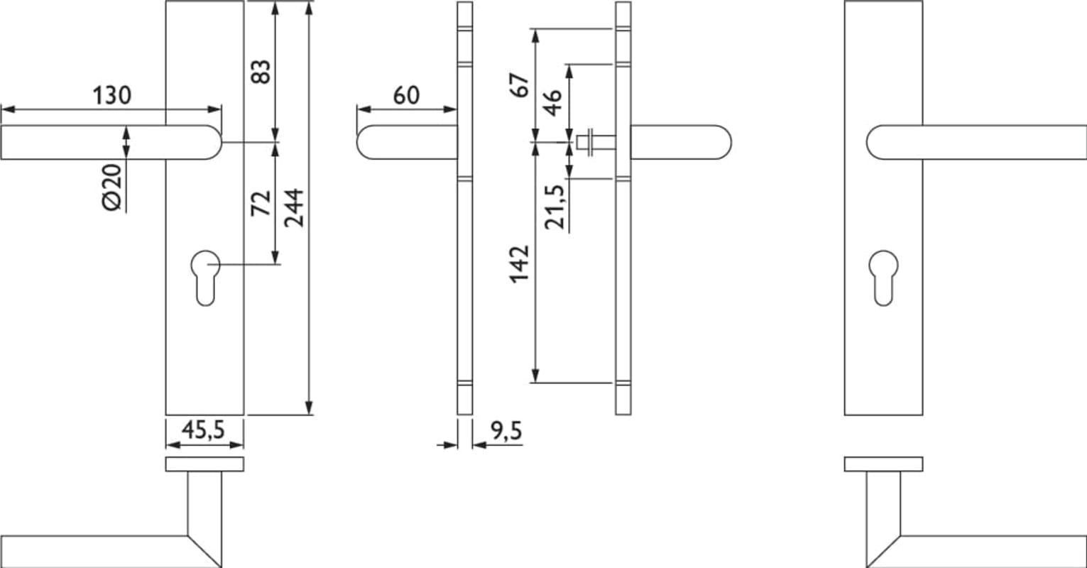ZT-Drückergarnitur 1802 BASIC 02, mit Langschild 2002 K, Ausf.: PZ 72 mm, Oberfl. 60 (Edelstahl matt)