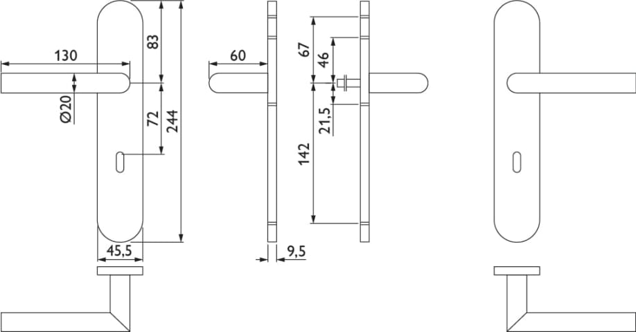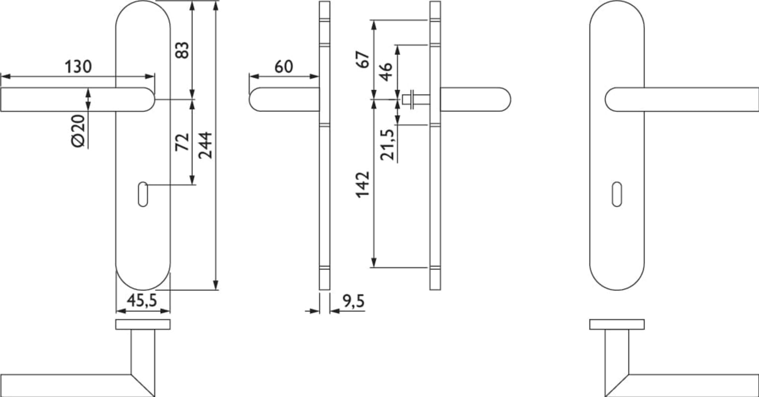 Innentür-Drückergarnitur BASIC 02, mit Langschild.