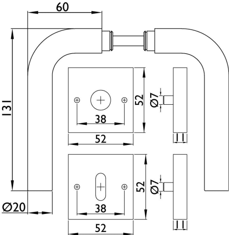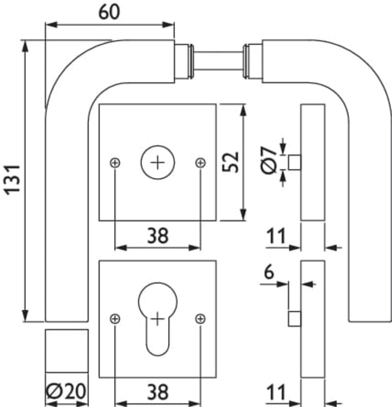 ZT-Drückergarnitur 1803 K BASIC 03, mit Rosetten 2011 KD & RHF, Ausf.: PZ, mit Rückholfeder, Türstärke 38 - 42 mm, Oberfl. 60 (Edelstahl matt)