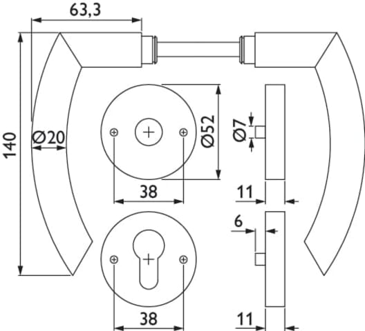 Drückergarnitur mit Smart-Clip Rosetten, fest/drehbar mit Rückholfeder.