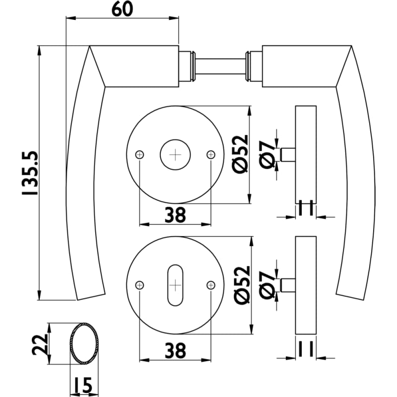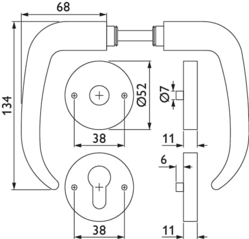 Innentür-Drückergarnitur BASIC 07, mit Smart-Clip Rosetten und Rückholfeder.