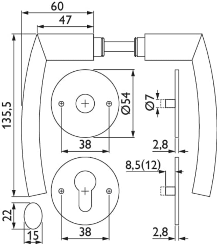 • 3 mm flaches Rosettendesign passend für Standard Rosettenbohrungen
